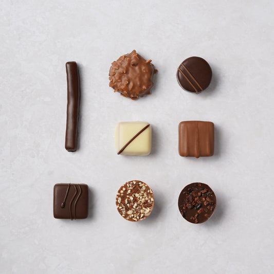 Wenn Sie einen köstlichen und abwechslungsreichen Moment der Verkostung wünschen, können Sie sich für die Geschenkpackungen mit einer Auswahl an verschiedenen Schokoladenpralinen entscheiden. Hier erwarten Sie Ganaches, Pralinés, aber auch andere schokoladige Leckereien. Einige Beispiele: die Geschenkpackung Découverte, die Geschenkpackung Petits Délices oder eine Ballotin-Schachtel mit 37 oder 50 Schokoladenpralinen.