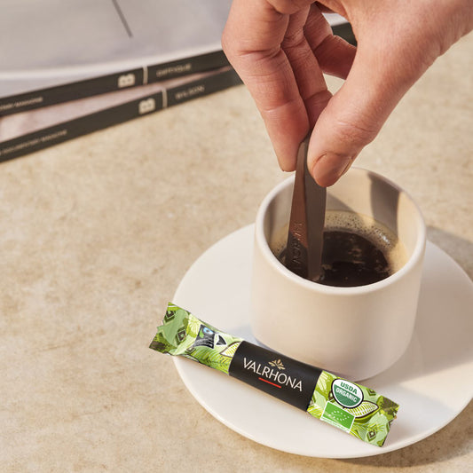 Die Schokoladentafeln von Valrhona sind ideal, um sich in die Kunst der Verkostung einführen zu lassen. Jede Tafel lädt Sie zu einer Sinnesreise ein, getragen von der Vielfalt der Kakaoherkunft und den unterschiedlichen Aromaprofilen. Von der kräftigen Guanaja 70 % über die säuerliche dunkle Schokolade Manjari 64 % bis hin zur sehr milden Milchschokolade Jivara 40 % oder der berühmten hellen Schokolade Dulcey 35 % ist jede Tafel eine sensorische Entdeckung. Aber das ist noch nicht alles: In unserem Online-Shop finden Sie weitere Tafeln dunkler Schokolade oder Milchschokolade. Für kleine Genüsse zum Mitnehmen sind die Mini-Tafeln ideal, um sie in die Tasche zu stecken oder bei einem Kaffee zu teilen. Möchten Sie sich umfassend in die Welt der Schokoladenverkostung einführen lassen? Entscheiden Sie sich für die Verkostungssets: das Set mit 6 Tafeln oder das Set mit 8 Mini-Tafeln.