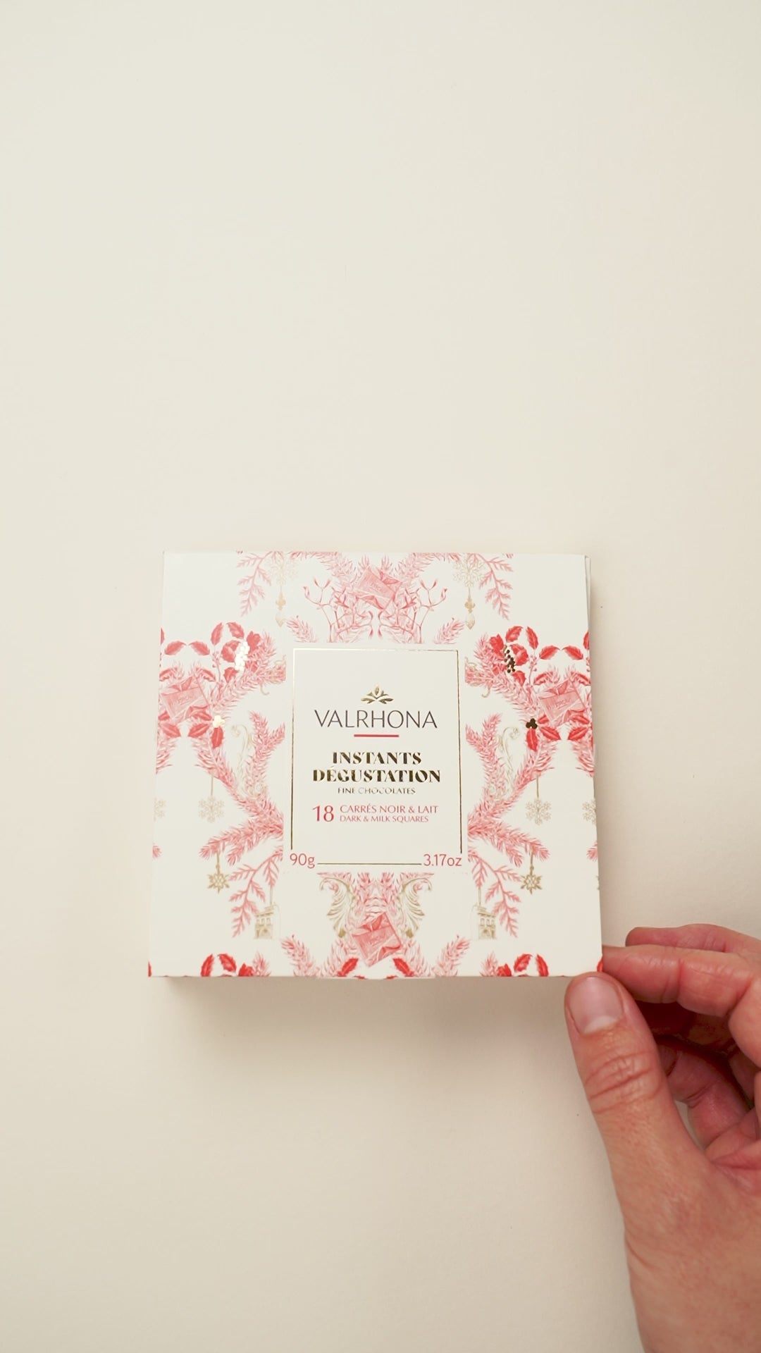 Découvrez l'art de la dégustation avec le Coffret de 18 Carrés Valrhona, mêlant les saveurs iconiques de Guanaja, Caraïbe et Jivara.